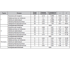 Background. Corneal diseases are a common cause of visual impairment, which requires timely diagnosis and objective assessment of its condition. The paper analyzes modern corneal staining scales and proposes a method of integral scoring. The me­thod allows to quantify the severity of symptoms, monitor the course of the disease and the effectiveness of therapy. Objective: to develop a modified integral corneal scoring scale by analyzing the methods of existing scoring scales and to evaluate its effectiveness in corneal diseases. Materials and methods. Two observation groups were selected for the evaluation. The first one consisted of patients after keratitis (acute phase), 20 eyes, the second group included people with chronic dystrophic corneal diseases (chronic phase), 18 eyes, and the control group — 20 eyes (second, healthy eye). Results. The study analyzed the nature of corneal neovascularization. In group I (acute inflammatory and traumatic conditions), superficial neovascularization was observed in 50 % of cases (6 eyes), deep one in 33 % (4 eyes), and mixed one in 17 % (2 eyes). In group II (patients with corneal dystrophies), deep vascularization prevailed in 46 % of cases (6 eyes), while superficial vascularization was observed in 30.7 % (4 eyes) and mixed vascularization in 23.1 % (3 eyes). These results confirm that superficial neovascularization is characteristic of acute processes, and deep neovascularization — of chronic degenerative changes. For the quantitative analysis of clinical signs, the method of integral scoring with symptom ranking was used. It was found that in group I the average integral index of symptom severity was 0.7, in group II — 0.2, and in the control group — 0.01. This indicates the presence of moderate or mild symptoms in dystrophies and its absence in healthy individuals. The proposed method of ranking allows us to objectively assess the severity of corneal lesions, their dynamics and the effectiveness of the treatment. Conclusions. An integrated approach to assessment allows not only to quantify clini­cal symptoms but also provides the ability to track the dynamics of the disease, identify trends in progression or regression, and evaluate the effectiveness of the therapy. This approach is recommended for use in both clinical practice and research.