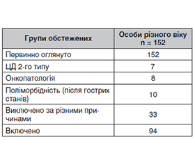 Актуальність. Кардіоренометаболічний синдром (КРМС) — це сукупність патологічних станів, які поєднують метаболічні порушення, серцево-судинну дисфункцію та ураження нирок, формуючи взаємопов’язану систему ускладнень. Особливу роль у розвитку та прогресуванні цього синдрому відіграє ендотеліальна дисфункція — ранній маркер судинного ураження, що асоціюється з порушенням вазодилатації, хронічним запаленням та проатерогенними змінами. Водночас зниження показника розрахункової швидкості клубочкової фільтрації (рШКФ) відображає не лише функціональний стан нирок, а й загальний ризик серцево-судинних подій та смертності. У контексті старіння популяції та зростання поширеності КРМС серед осіб різного віку, особливо середнього й похилого, актуальним стає вивчення взаємозв’язку між дисфункцією ендотелію та зниженням рШКФ. Рання діагностика цих порушень дозволить не лише виявити осіб з високим кардіоренальним ризиком, а й впровадити підходи до профілактики, ранньої діагностики та лікування. Мета: оцінити функціональний стан нирок і судинного ендотелію в осіб різного віку з ознаками КРМС та з’ясувати можливості корекції виявлених змін застосуванням екстракту леспедези головчастої (Lespedeza capitata) як потенційного засобу нефро- та ангіопротекції. Матеріали та методи. Первинно обстежено 152 особи різного віку. Згідно з критеріями включення було виключено 58 осіб за різними причинами. Комплексне обстеження проведено у 94 осіб різного віку (середній вік становив 54,82 ± 0,97 року), з яких у більшості виявлено зниження рШКФ, підвищення співвідношення альбумін/креатинін (САК) у сечі та зниження функції ендотелію. Для корекції виявлених змін на фоні проведення стандартної антигіпертензивної терапії було додано до лікування Lespedeza capitata, яку призначали незалежно від прийому їжі протягом 1 місяця попередньо обстеженим особам (n = 39). Критеріями ефективності лікування були: динаміка рШКФ, САК у сечі та показники функціонального стану ендотелію (приріст кровотоку при проведенні проби з реактивною гіперемією). Термін спостереження за пацієнтами становив 1 місяць. Обстеження проводили з використанням стандартних клінічних, антропометричних, лабораторних і інструментальних методів. Результати. З віком відмічається тенденція до зниження показника рШКФ з 79,73 ± 1,91 мл/хв/1,73 м2 у середньому віці (47,28 ± 0,72 року) до 64,01 ± 2,21 мл/хв/1,73 м2 у похилому віці (67,18 ± 0,49 року). В осіб середнього віку (100 %) рШКФ знаходиться в межах категорії G2 (60–89 мл/хв/1,73 м2), водночас у 46 % осіб похилого віку рШКФ знижується до категорії G3а (45–59 мл/хв/1,73 м2). Нормальна або висока рШКФ (категорія G1, ≥ 90 мл/хв/1,73 м2) зберігається лише у 10 % обстежених похилого віку. Серед осіб середнього віку із незначним зниженням рШКФ у межах категорії G2 (60–89 мл/хв/1,73 м2) виявлено підвищення показника САК у третини обстежених, тоді як в осіб похилого віку превалює зниження рШКФ до 40–59 мл/хв/1,73 м2, яке розцінюється як хронічна хвороба нирок (ХХН) у межах категорії G3а, що супроводжується підвищенням показника САК у 25 % осіб. При оцінці функціонального стану ендотелію великих судин виявлено, що серед обстежених осіб (n = 94) з різними категоріями рШКФ (G1, G2, G3а) ознаки ендотеліальної дисфункції спостерігалися у 54 хворих (57,45 %). Із них у 19 пацієнтів (35,18 %) зафіксовано крайній ступінь порушення — вазоспастичну реакцію п